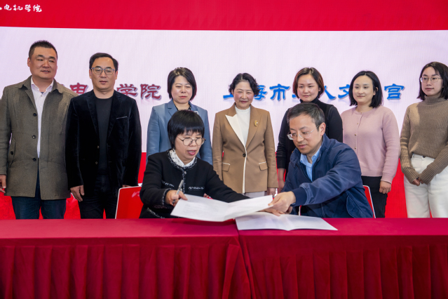 304永利集团主持工作副经理范冬姣,上海市工人文化宫党委委员、工会主席,办公室主任、文体部部长刘骏,代表双方共同签署了“大思政课”合作共建协议。双方围绕团队共享、课程合作、思政教育与实践结合,以及共建模式等作了深入探讨。